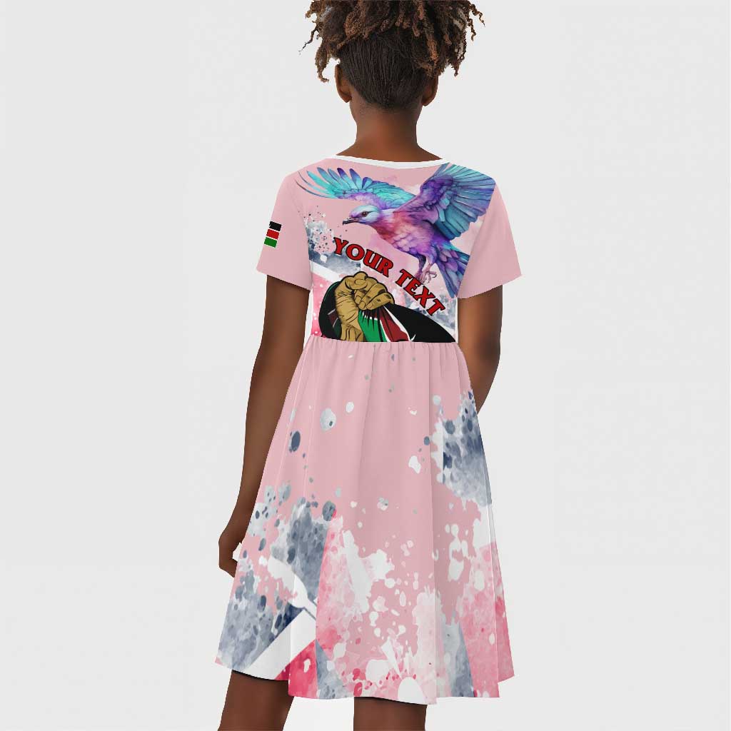 Personalized Kenya Independence Day Kid Short Sleeve Dress with Lilac Breasted Roller - Unique Version