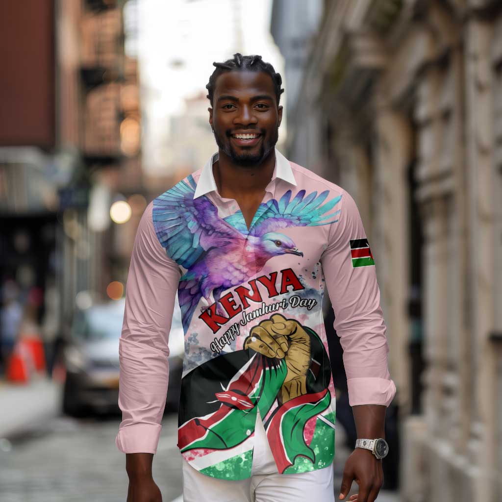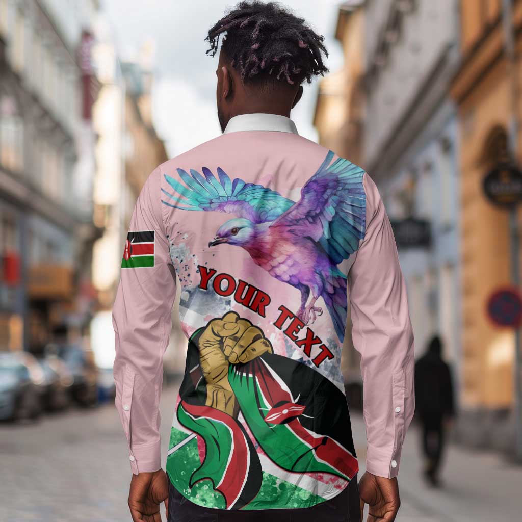 Personalized Kenya Independence Day Long Sleeve Button Shirt with Lilac Breasted Roller - Unique Version