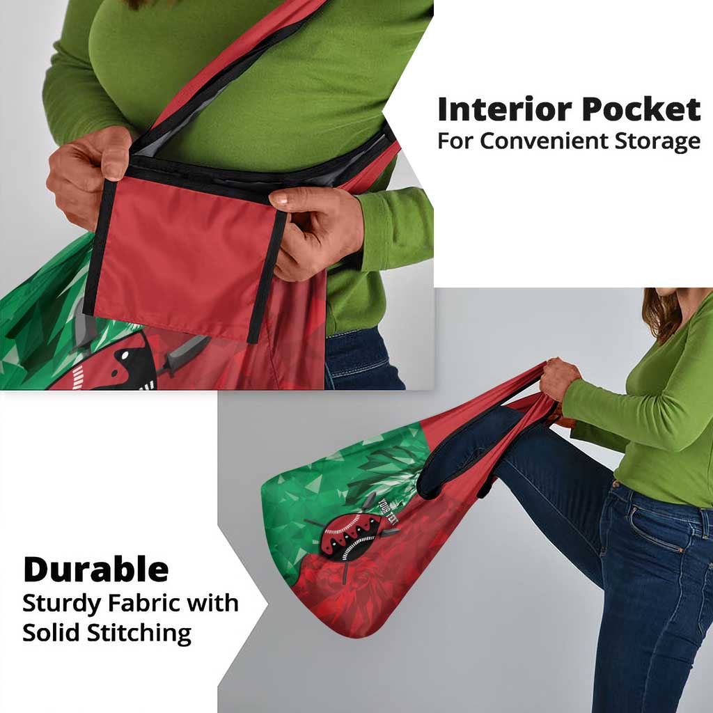 Personalized Kenya Maasai Shield Grocery Bag Green Red Kenyan Lion Half Style
