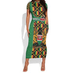 Kenya Short Sleeve Bodycon Dress - Kente Pattern, Coat Of Arms Design