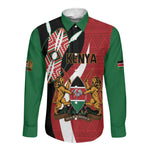 Custom Kenya Football Long Sleeve Button Shirt Maasai Shield Coat Of Arms Style