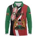 Custom Kenya Football Long Sleeve Polo Shirt Maasai Shield Coat Of Arms Style