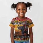 Afro Christmas in Kenya Safari Kid T shirt Black Santa Riding Elephant