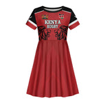 Custom Afro Kenya Rugby Kid Short Sleeve Dress African Lion Head