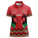 Custom Cricket Africa Kenya Women Polo Shirt Red Lion Head with Kenyan Pattern