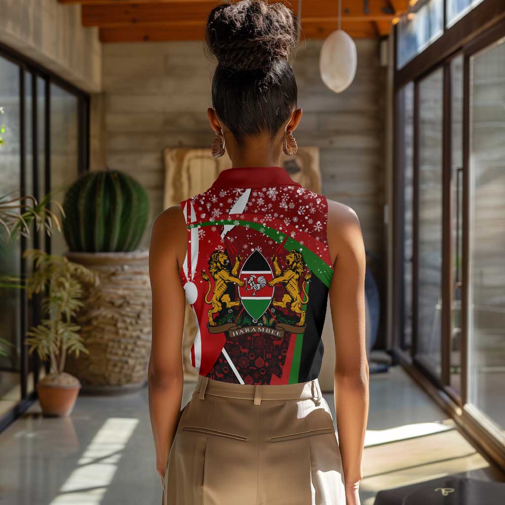 Kenya Christmas Women Sleeveless Polo Shirt Santa Claus Spear and Red Green Harambee Crest