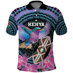 Personalised Kenya Lilac Breasted Roller Polo Shirt Orchid Flower - African Pattern