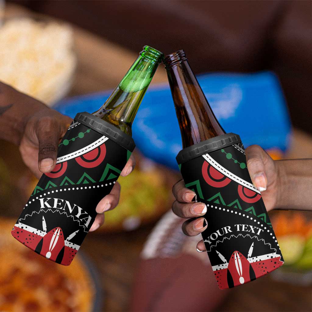 Personalized Kenya 4 in 1 Can Cooler Tumbler Harambee African Pattern - Coat of Arms Design