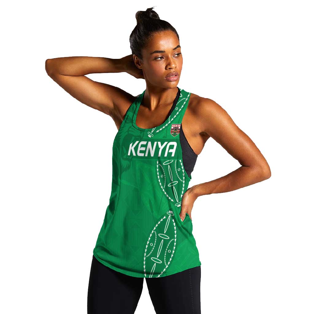 Jamhuri ya Kenya Rugby Custom Women Racerback Tank Kenyan Shield Style - Green Color