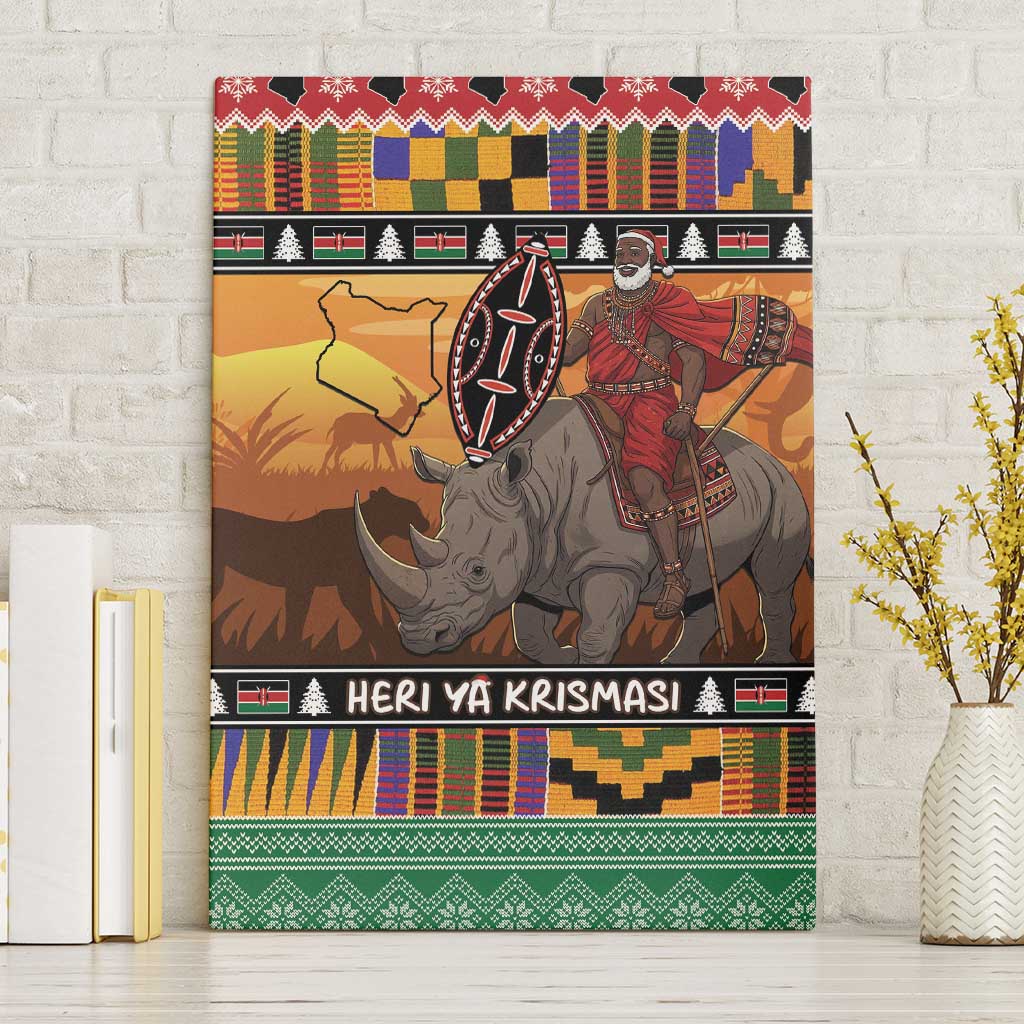 Afro Christmas in Kenya Safari Canvas Wall Art Black Santa Riding Rhinoceros