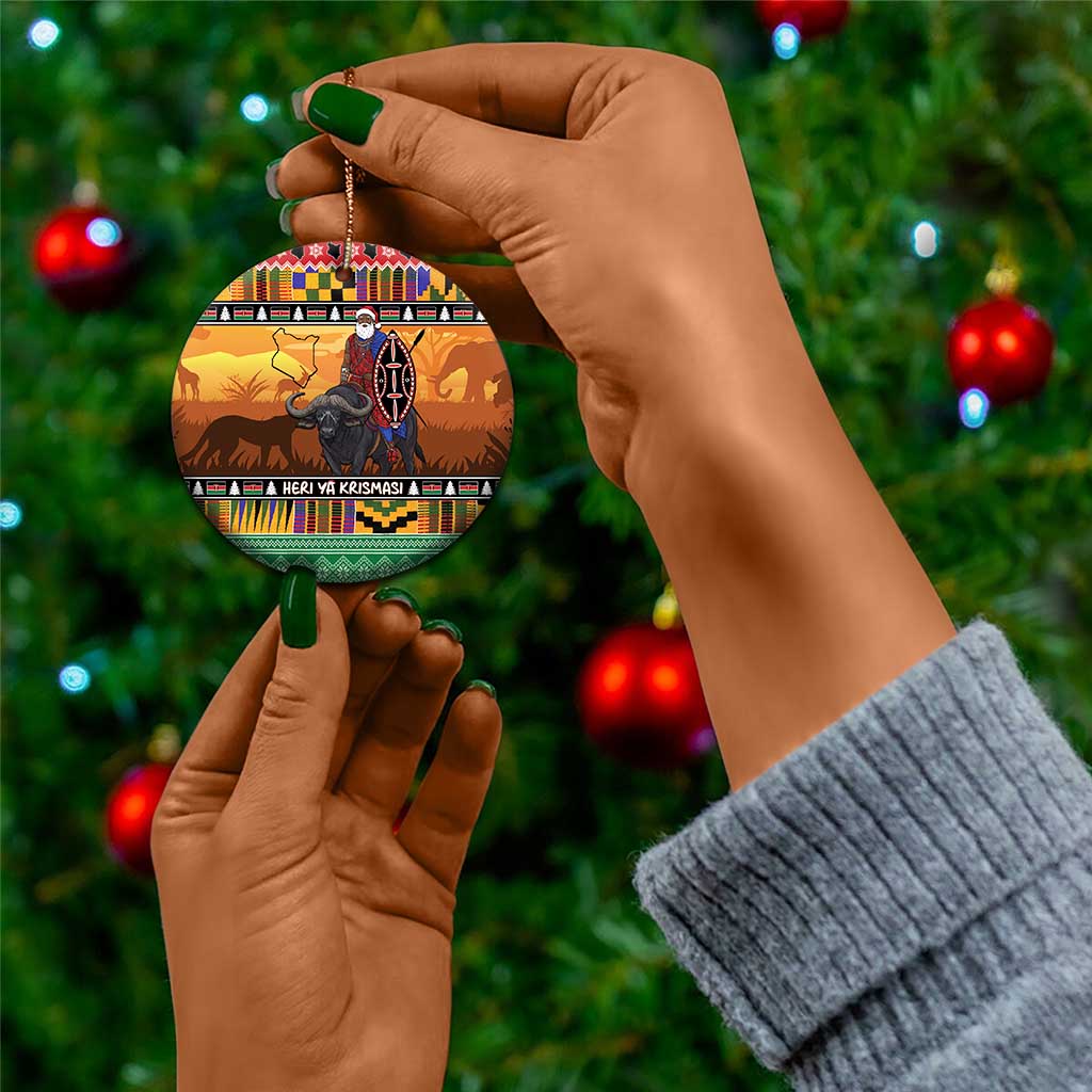 Afro Christmas in Kenya Safari Ceramic Ornament Black Santa Riding Cape Buffalo