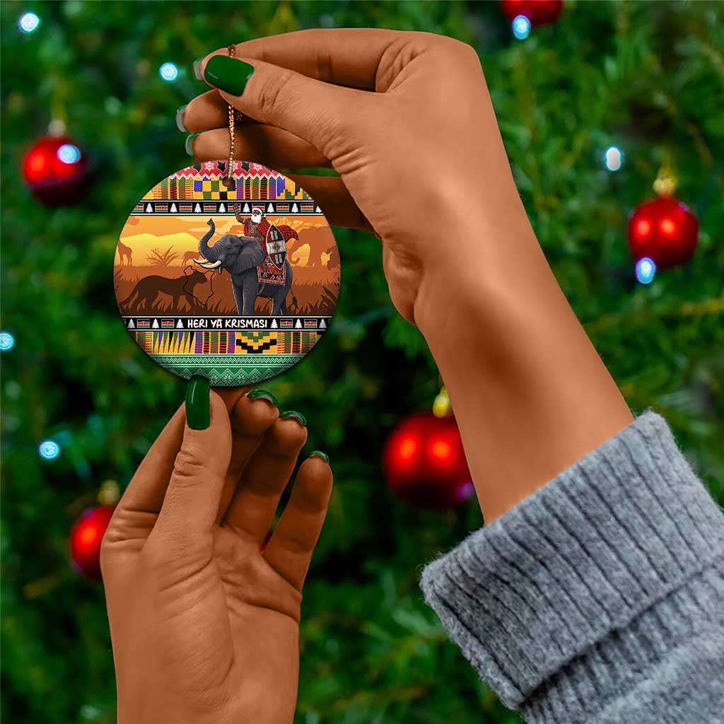 Afro Christmas in Kenya Safari Ceramic Ornament Black Santa Riding Elephant