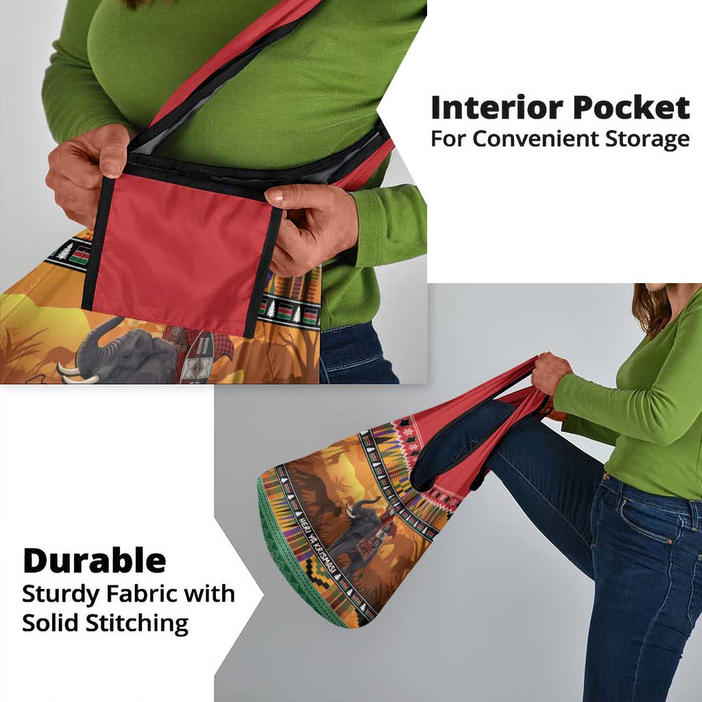 Afro Christmas in Kenya Safari Grocery Bag Black Santa Riding Elephant