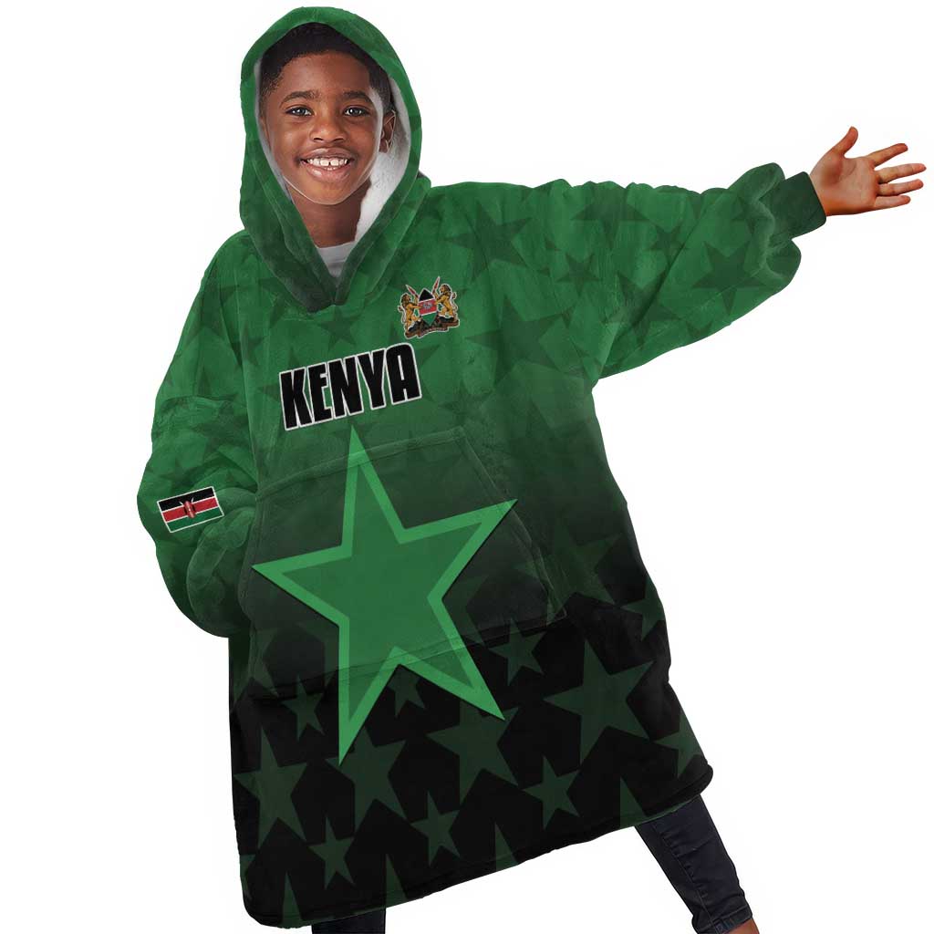 Custom Kenya Football Kid Wearable Blanket Hoodie Harambee Harambee Stars - Green Jersey