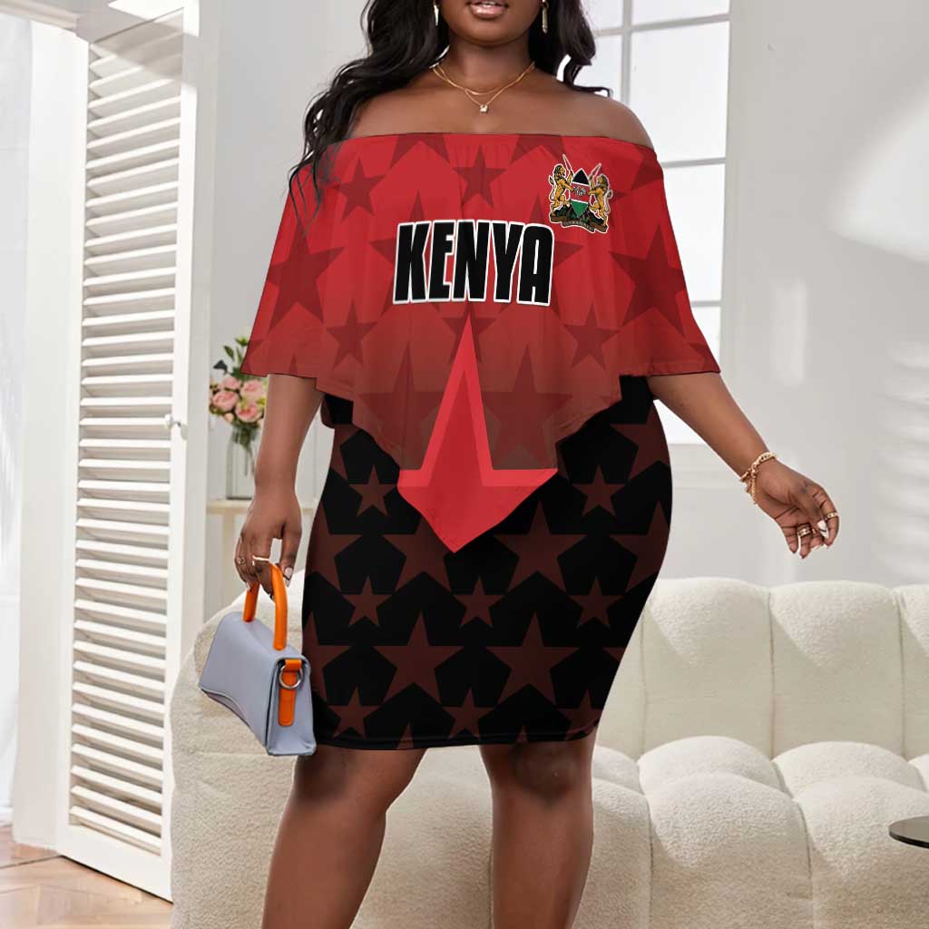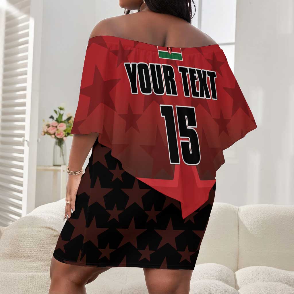 Custom Kenya Football Off Shoulder Short Dress Harambee Harambee Stars - Red Jersey