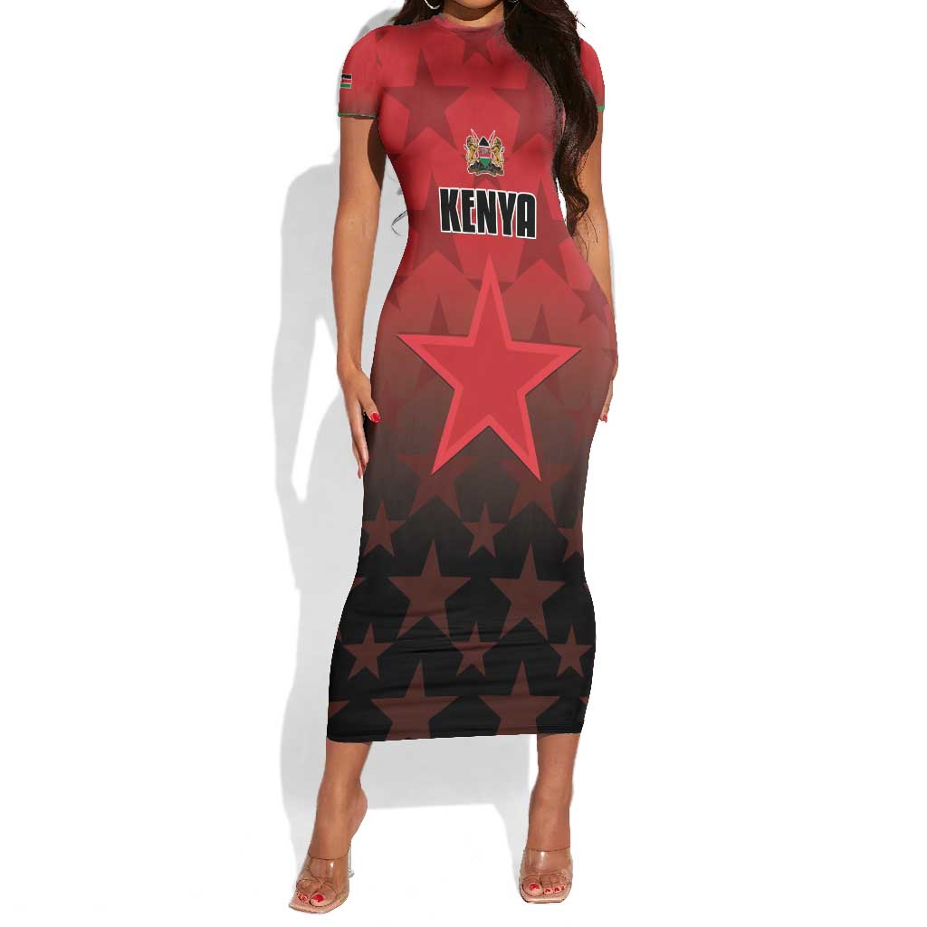 Custom Kenya Football Short Sleeve Bodycon Dress Harambee Harambee Stars - Red Jersey