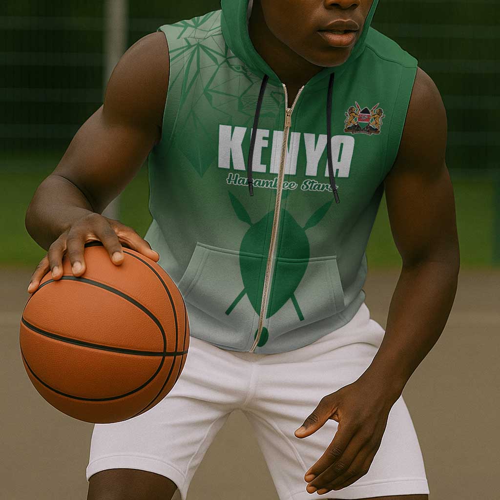 Custom Kenya Football Sleeveless Zip Hoodie Go Harambee Stars