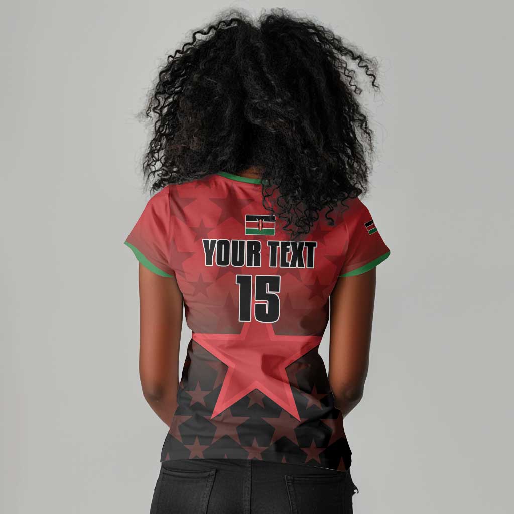 Custom Kenya Football Women V-Neck T-Shirt Harambee Harambee Stars - Red Jersey