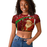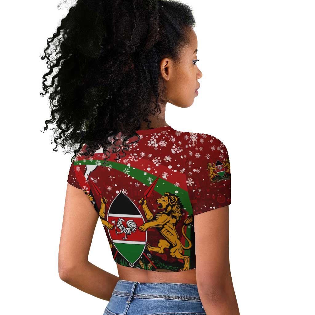 Kenya Christmas Raglan Cropped T shirt Santa Claus Spear and Red Green Harambee Crest