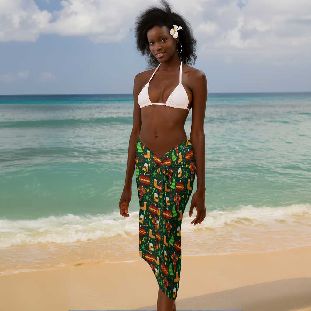 Kenya Christmas Sarong Santa Feast Scene and Festive Wreath Pattern
