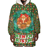 Kenya Christmas Wearable Blanket Hoodie Santa Feast Scene and Festive Wreath Pattern
