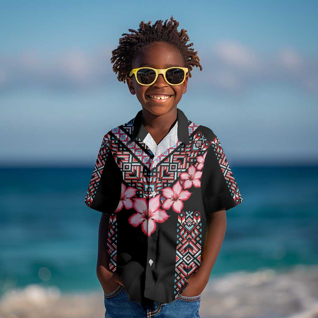 Afro Adenium Multiflorum Flowers Kid Hawaiian Shirt Mix Native Tribal Pattern