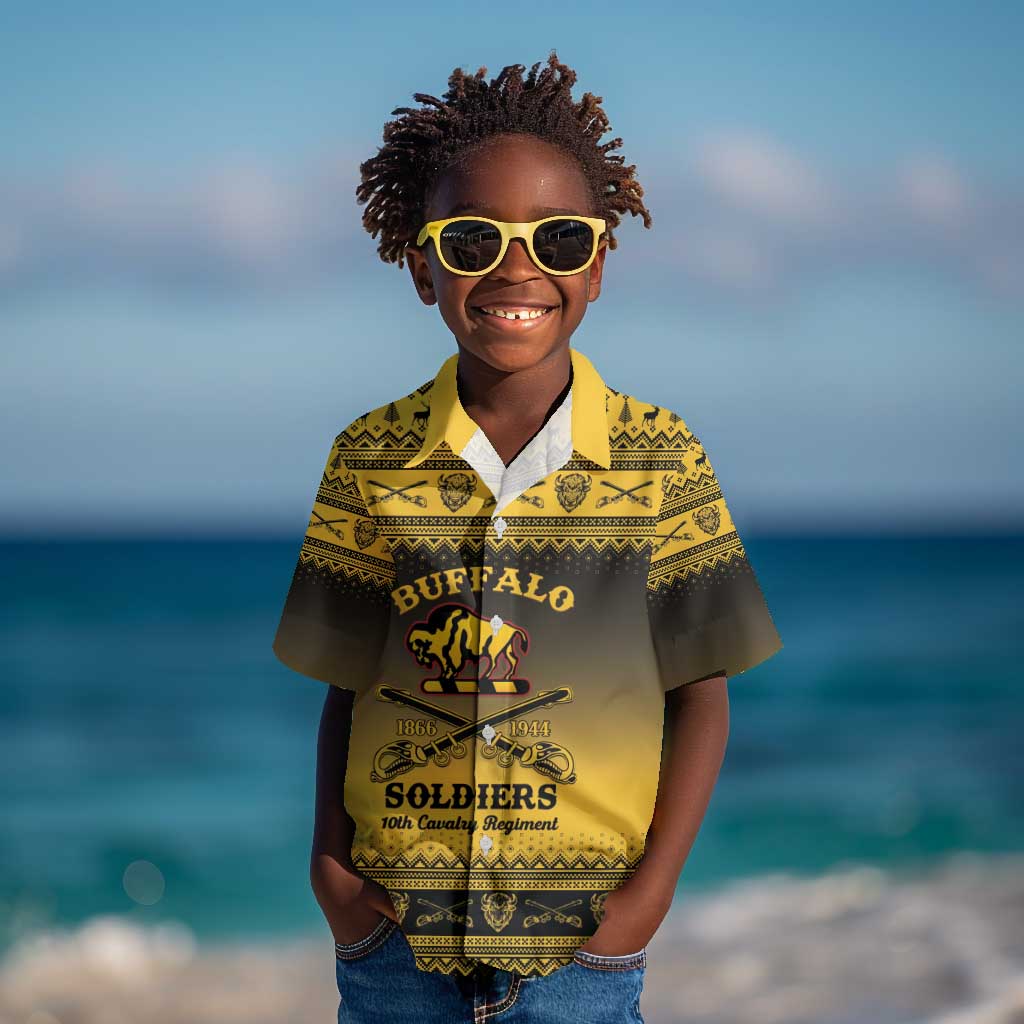 Afro Christmas Buffalo Soldiers Kid Hawaiian Shirt 10th Cavalry Regiment