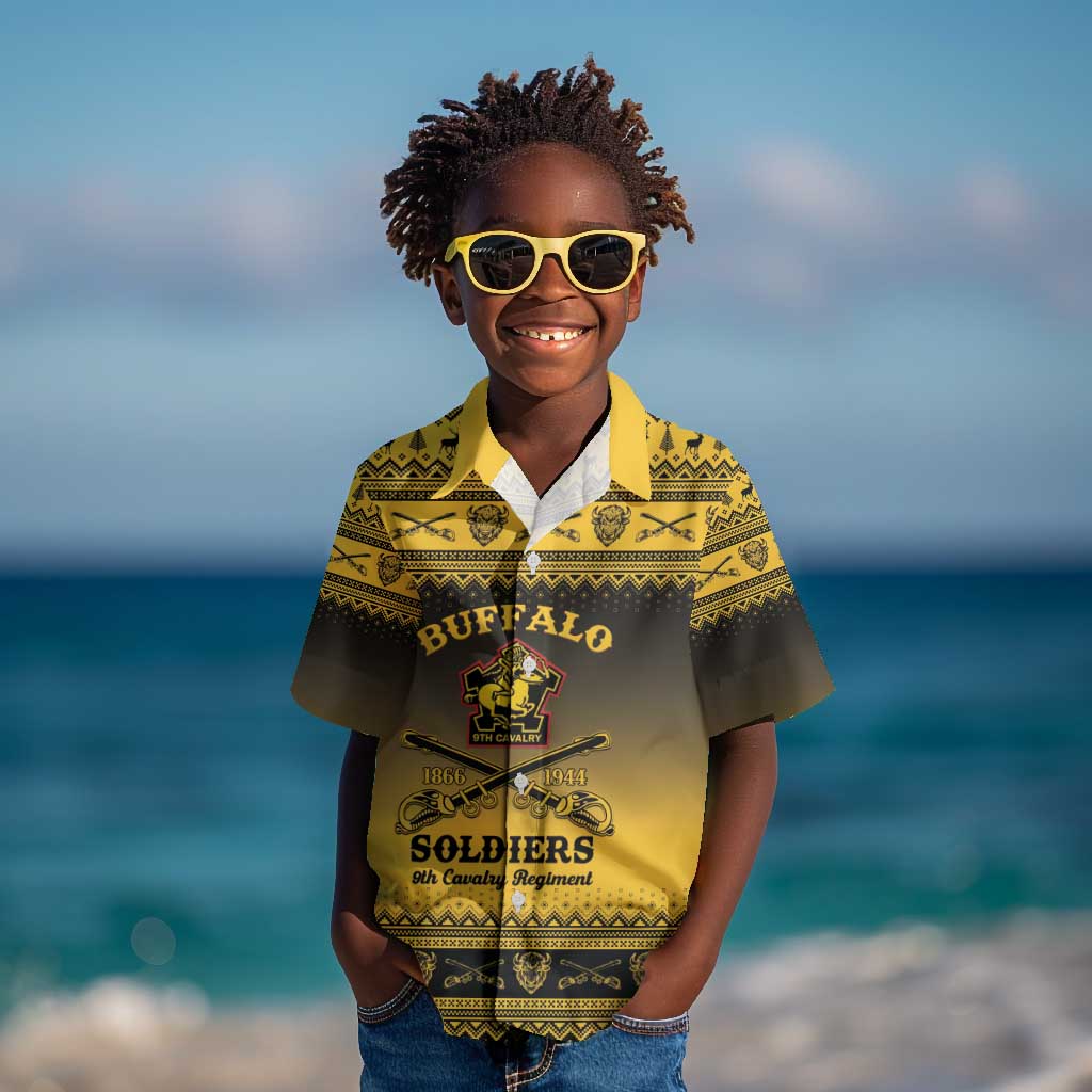Afro Christmas Buffalo Soldiers Kid Hawaiian Shirt 9th Cavalry Regiment