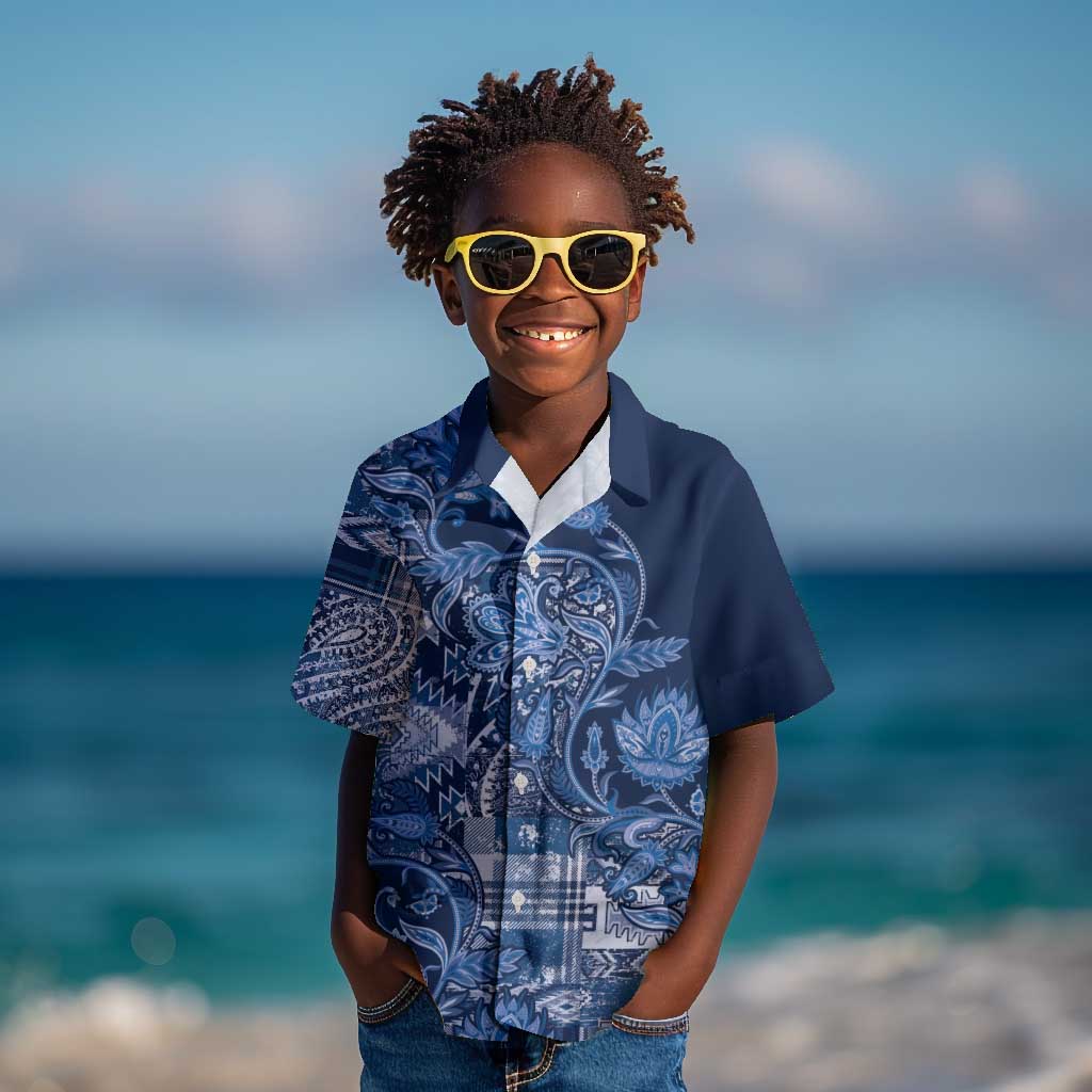 Afro Floral mix Maasai Shuka Kid Hawaiian Shirt Blue Moitf