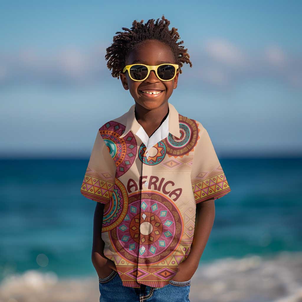 Afro Tribal Traditional Pattern Kid Hawaiian Shirt Beige Motif