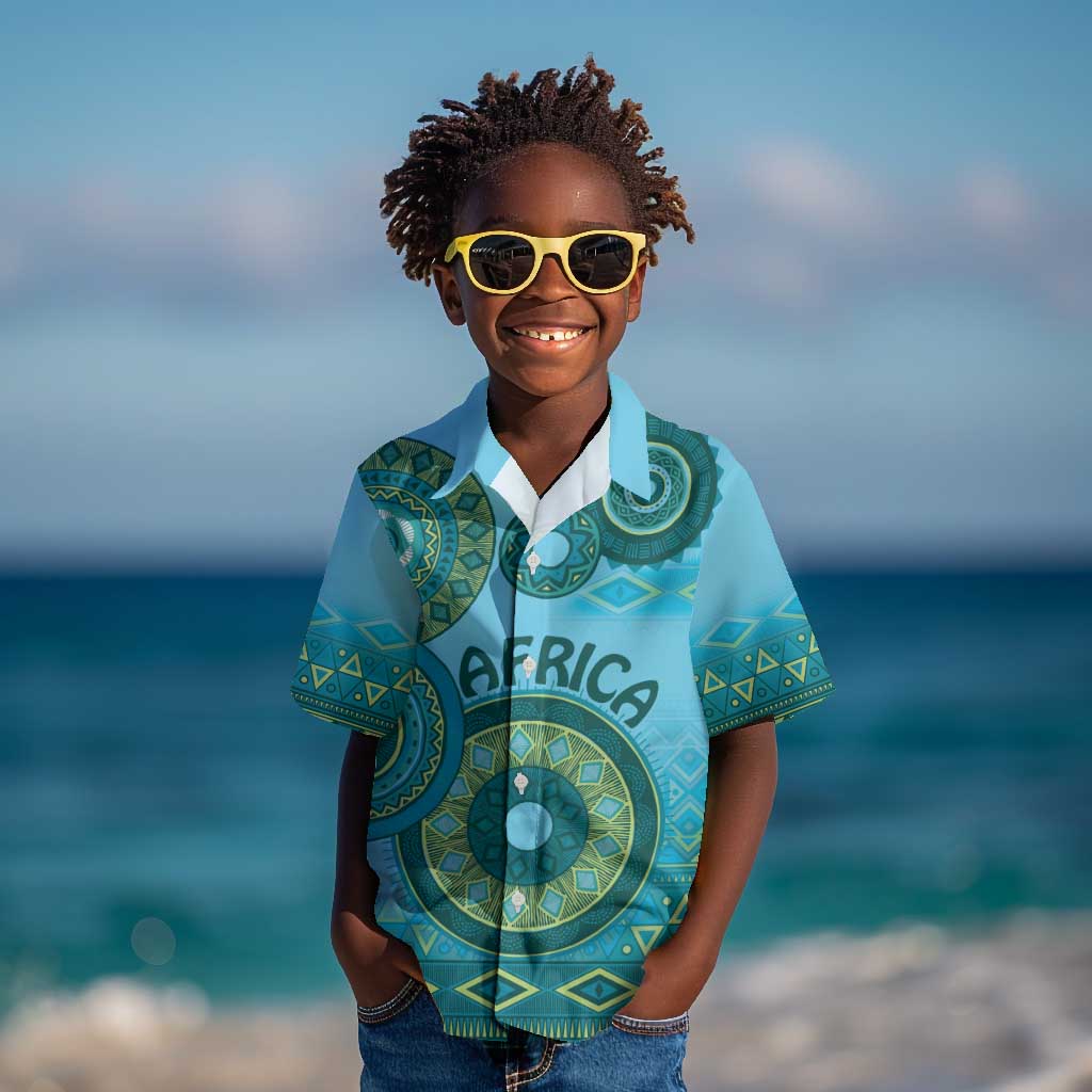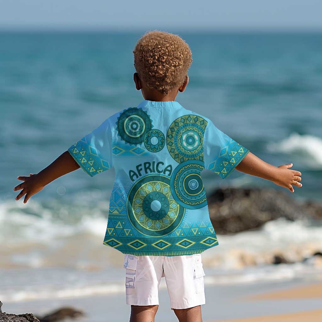 Afro Tribal Traditional Pattern Kid Hawaiian Shirt Blue Motif