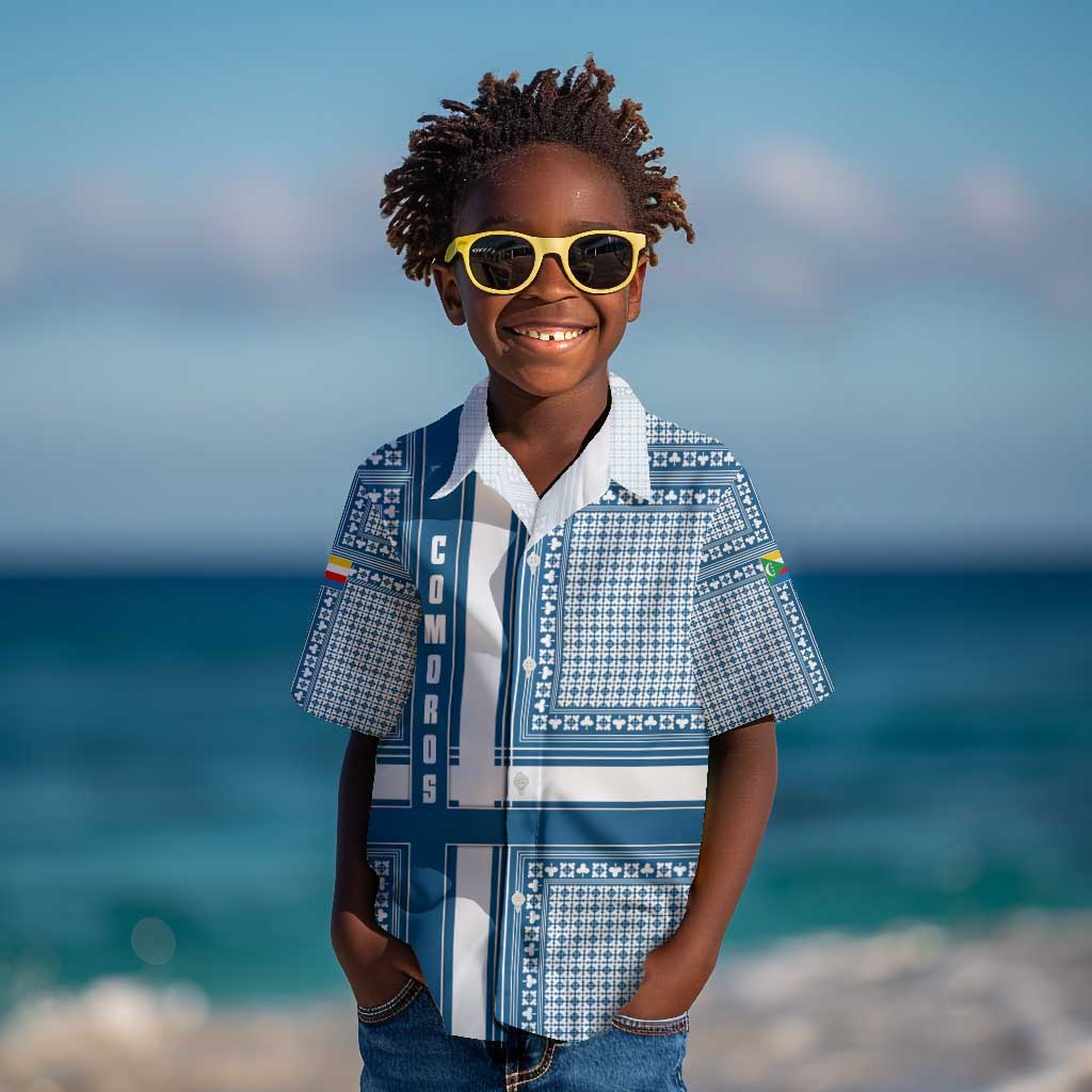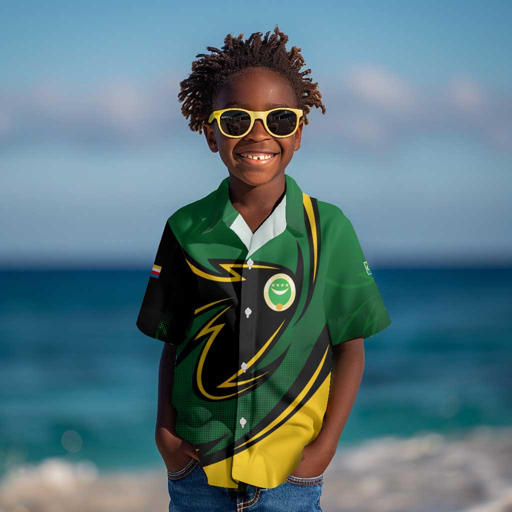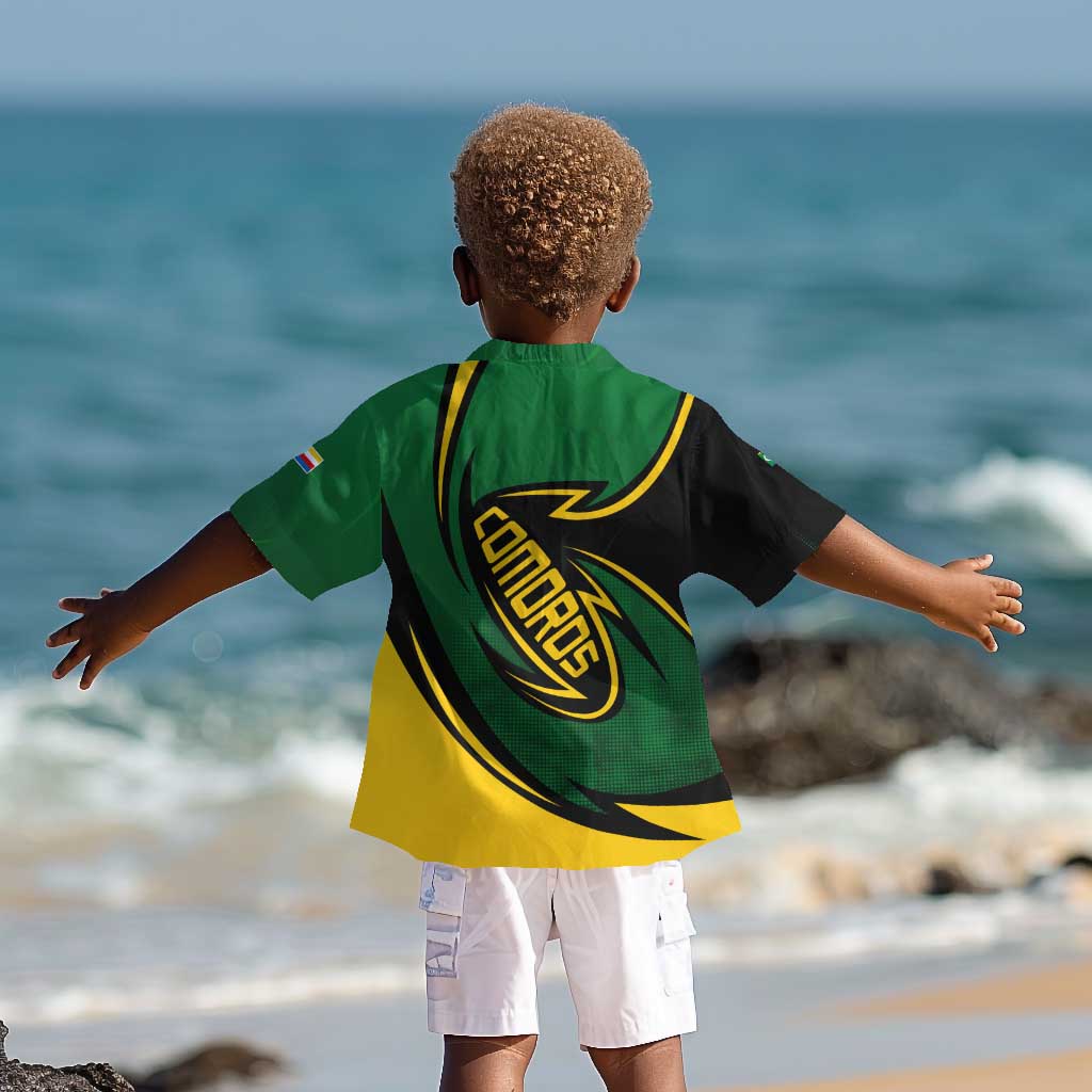 Comoros Kid Hawaiian Shirt - Green Black Yellow Swirl Design and National Emblem Pattern