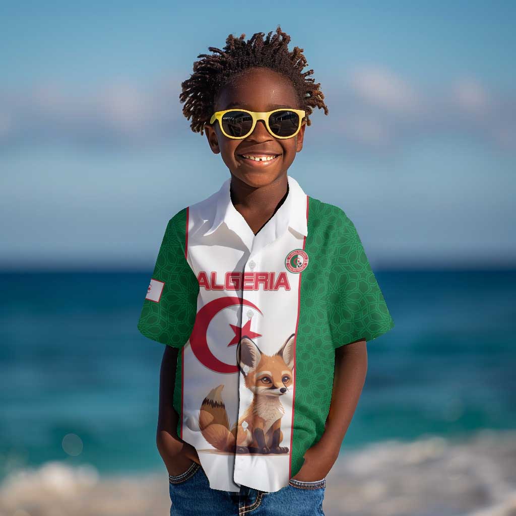 Custom Algeria Football Kid Hawaiian Shirt Fennec Foxes With Islamic Pattern