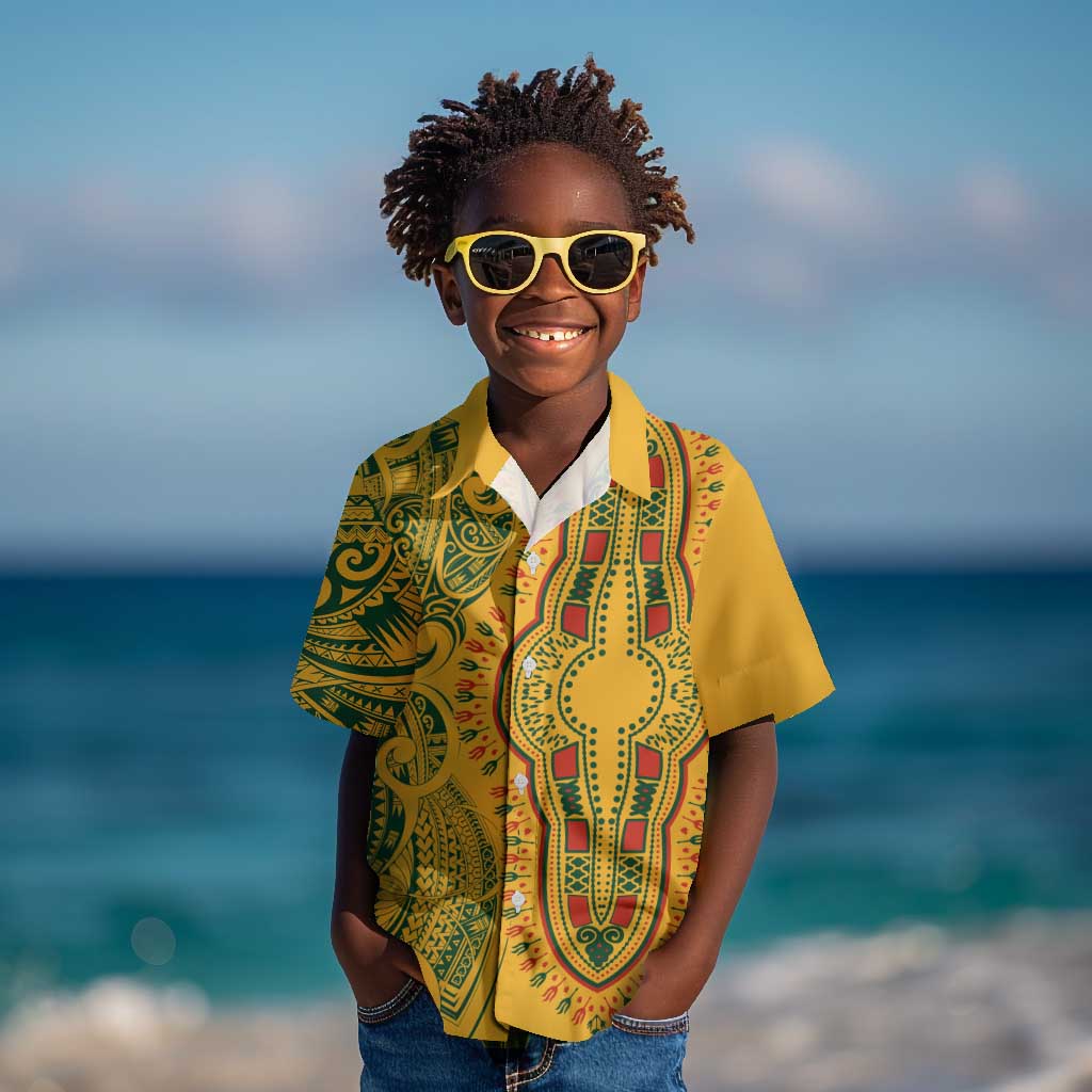Dashiki and Polynesian Pattern Kid Hawaiian Shirt Afro Pacific Culture Gold Version