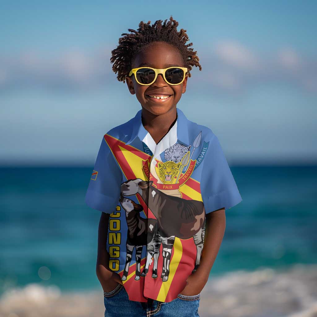 DR Congo Kid Hawaiian Shirt Okapi Coat Of Arms