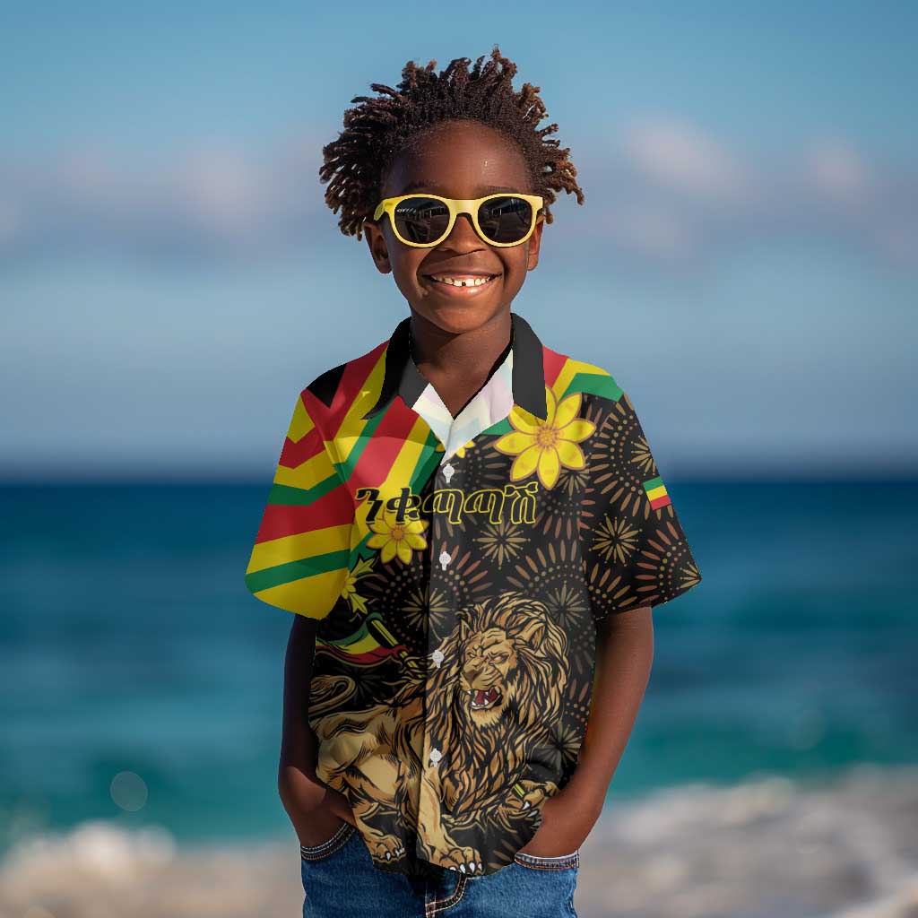 Enkutatash Ethiopia New Year Kid Hawaiian Shirt Lion of Judah Adey Abeba Flower