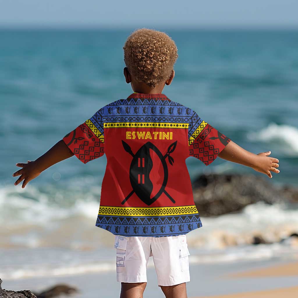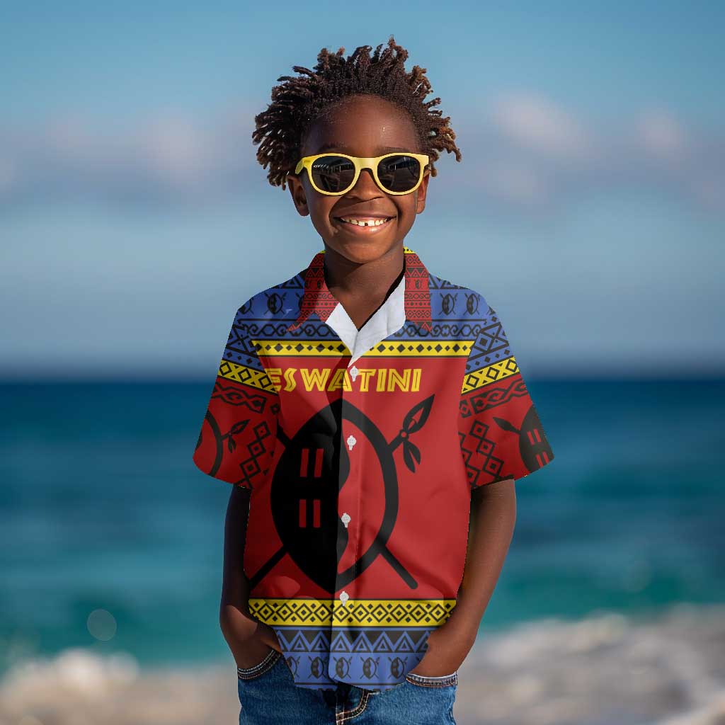 Eswatini Flag Kid Hawaiian Shirt Nguni Shield Spear Pattern