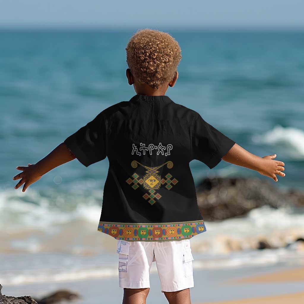 Ethiopia Saba Kemis Habesha Style Kid Hawaiian Shirt Black Color