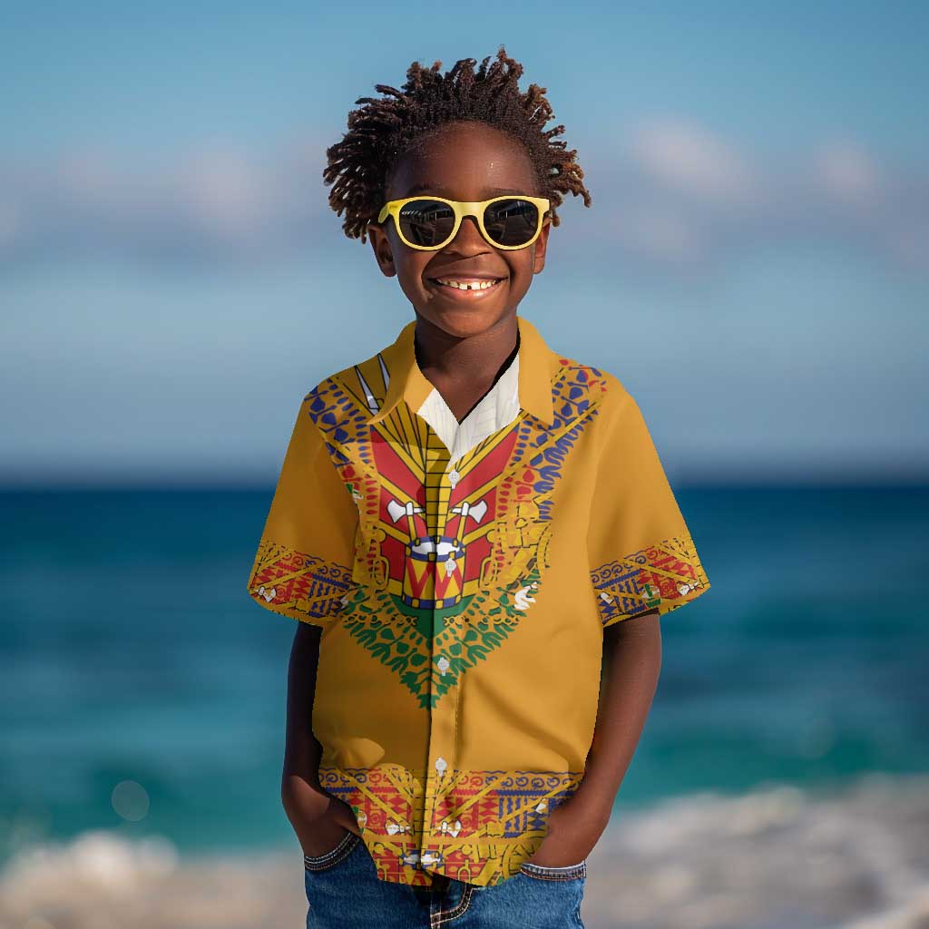 Haiti Flag Kid Hawaiian Shirt Traditional Dashiki Yellow Color