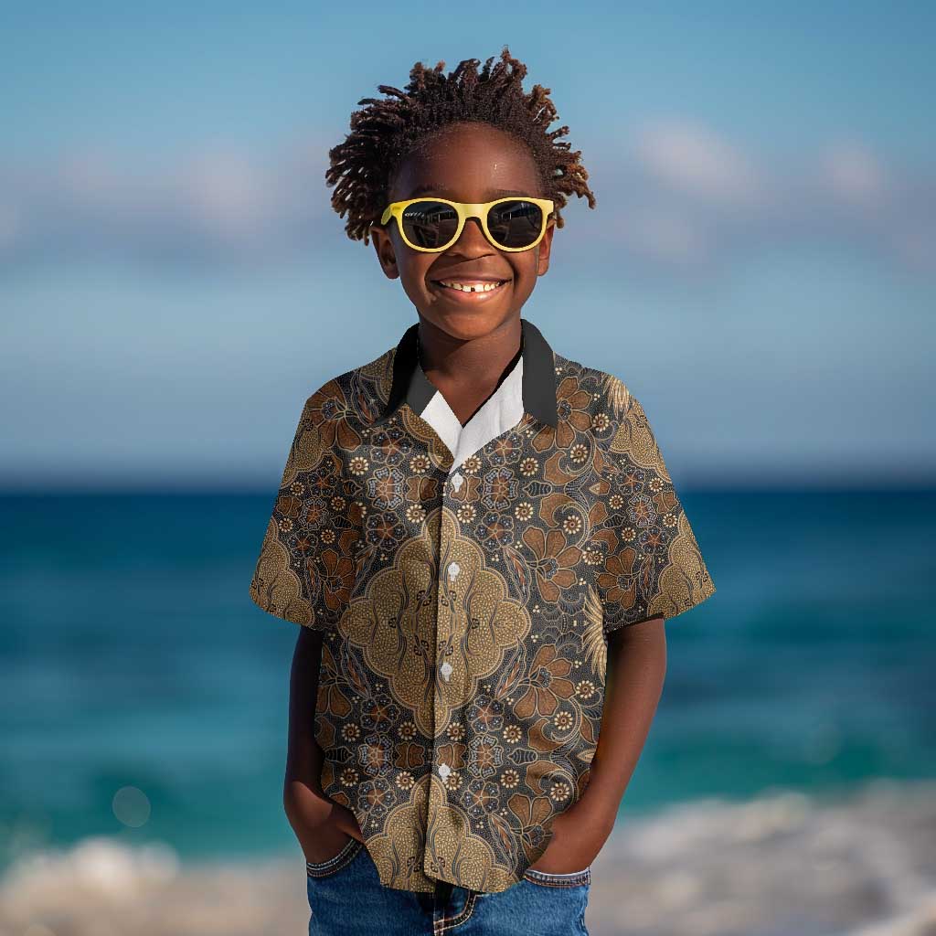Madiba Nelson Mandela Batik Kid Hawaiian Shirt Earthy Brown Indonesia Heritage