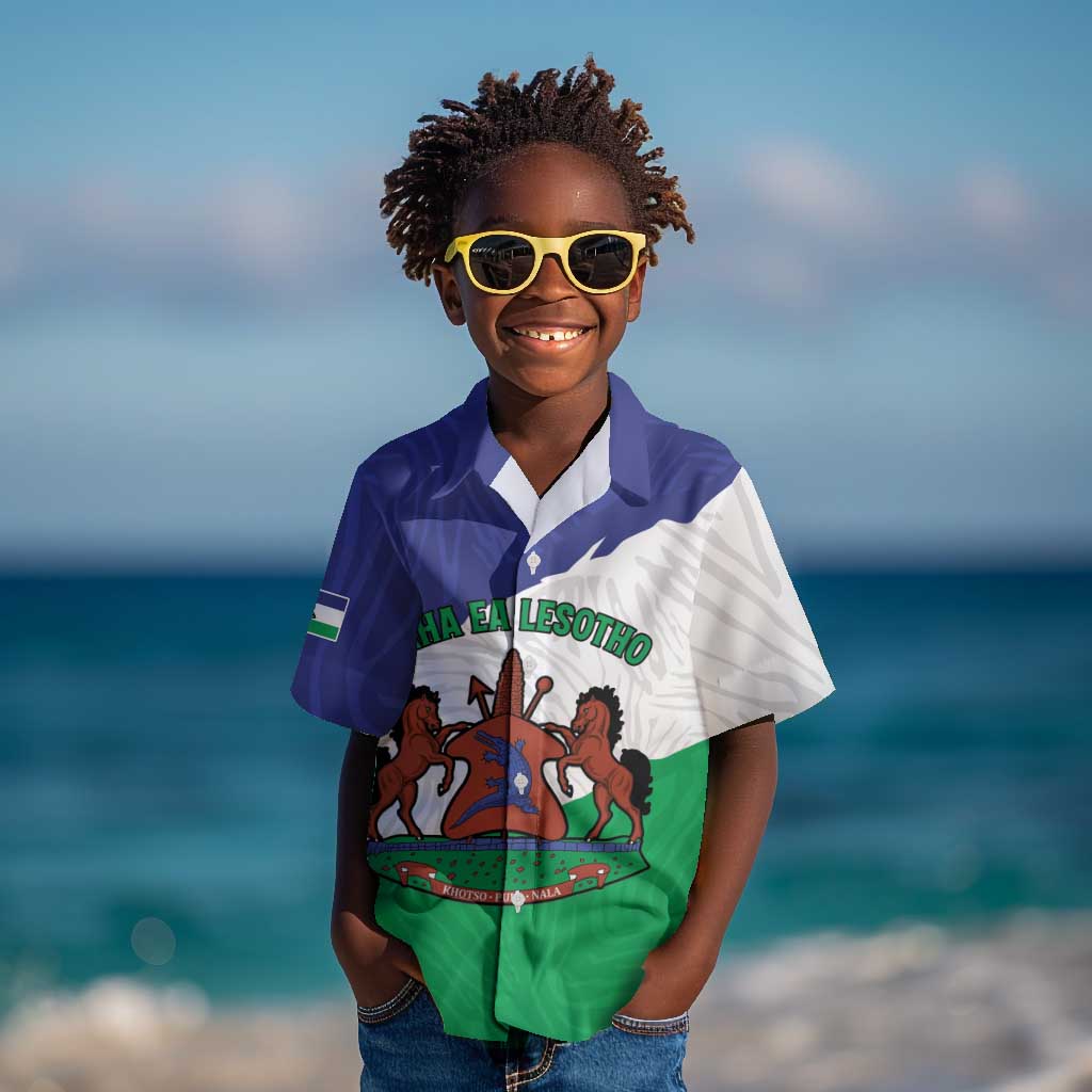 Personalised Afro Lesotho Kid Hawaiian Shirt Coat Of Arms With Map - Grunge Style
