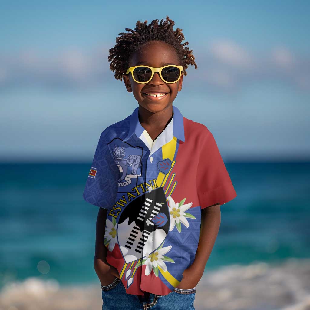 Personalized Happy Swaziland National Flag Day Kid Hawaiian Shirt Nguni Shield Flag Style - African Pattern