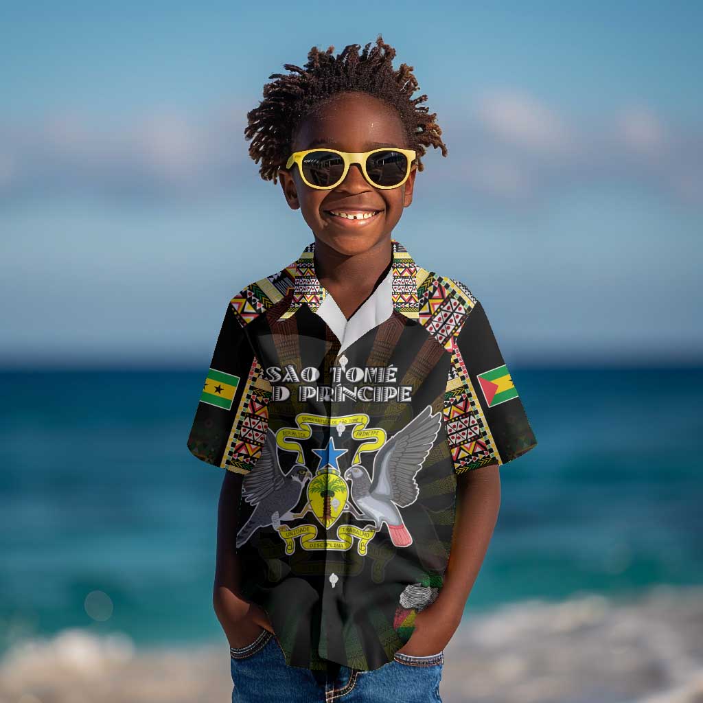 Personalized Sao Tome and Principe Roots Kid Hawaiian Shirt African Pride in Fingerprint and Tribal Colors