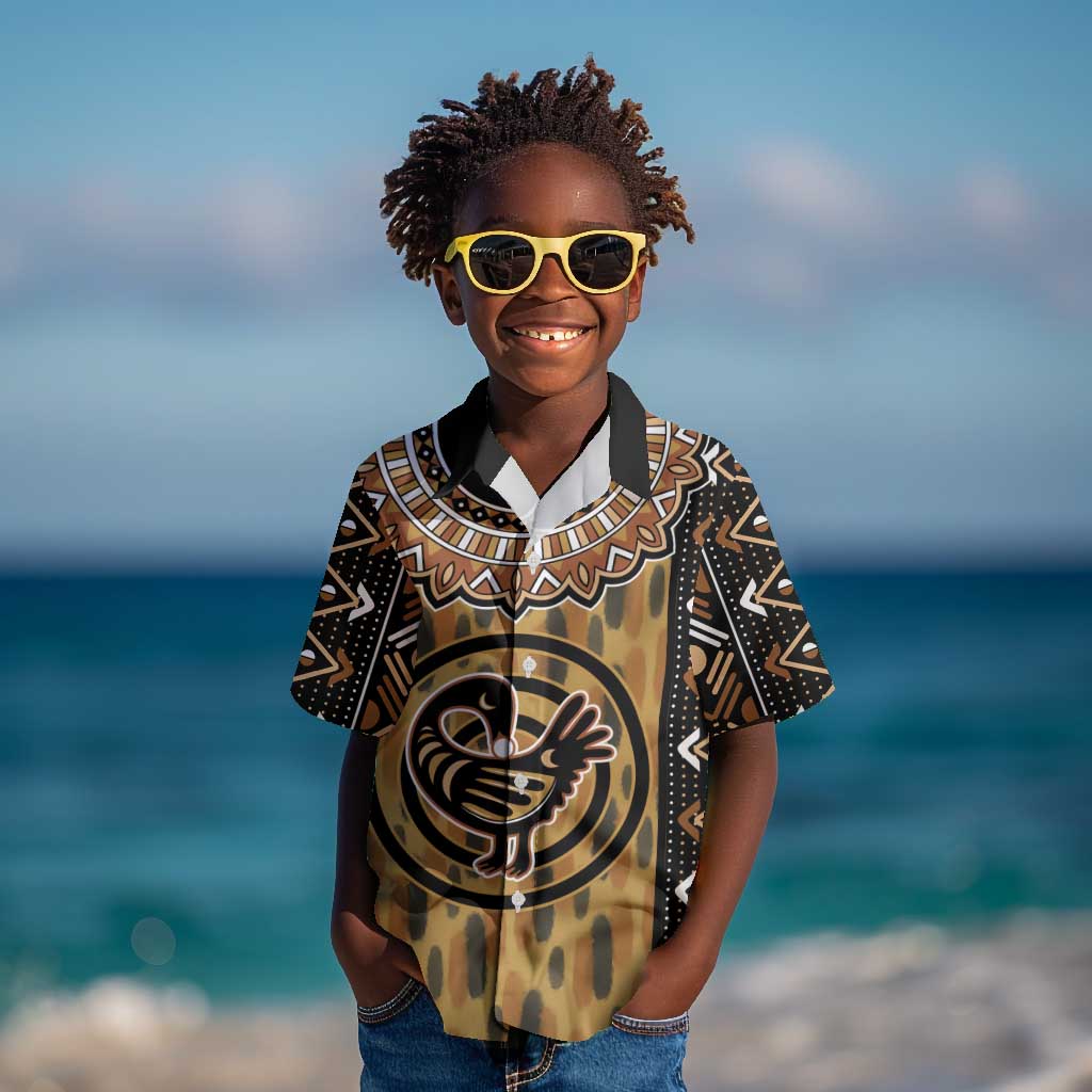 Printed Mud Cloth and Adinkra Symbol Kid Hawaiian Shirt