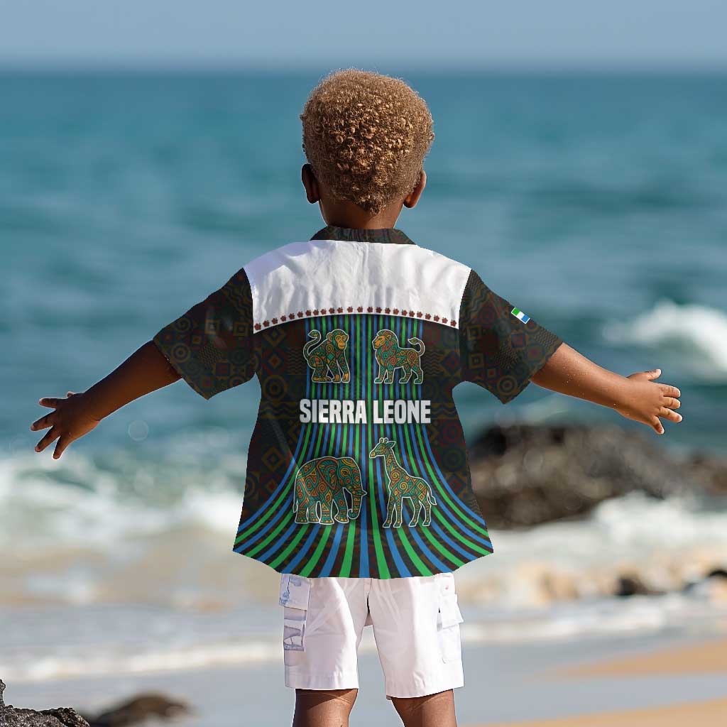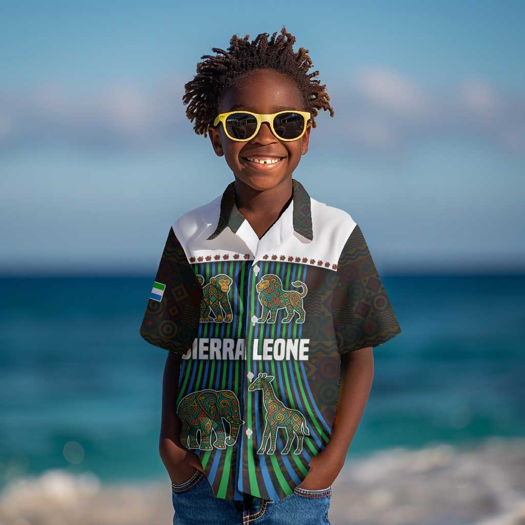 Sierra Leone Kid Hawaiian Shirt - Tribal Animal Pattern Featuring Lion Elephant Giraffe and Monkey