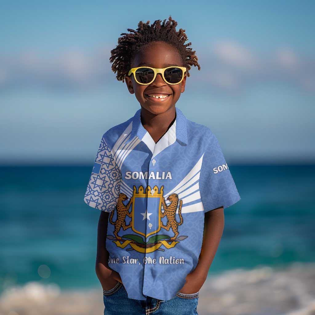 Somalia Kid Hawaiian Shirt with Coat of Arms One Star One Nation Blue White Spirit