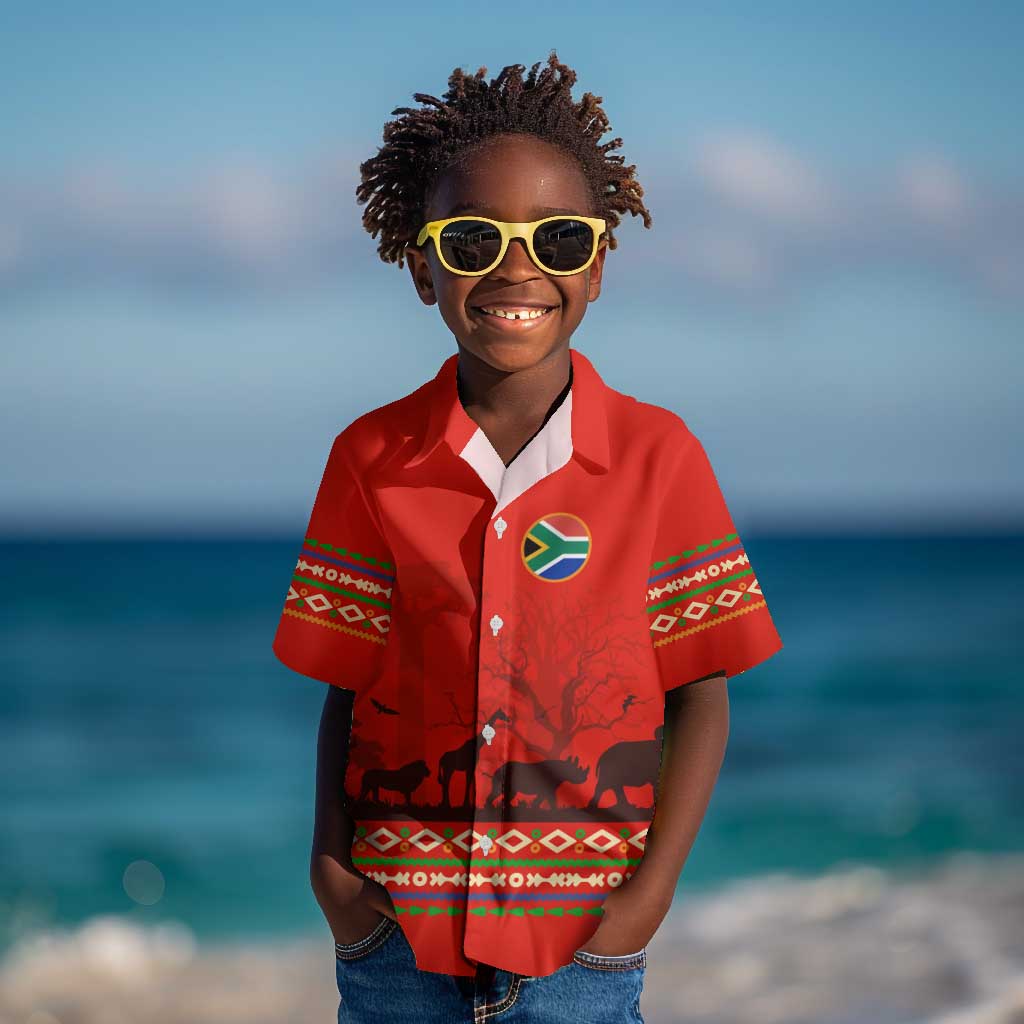 Wildlife South Africa Kid Hawaiian Shirt Tribal Pattern National Flag Safari Silhouettes