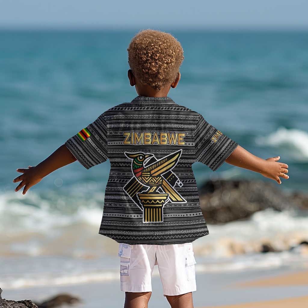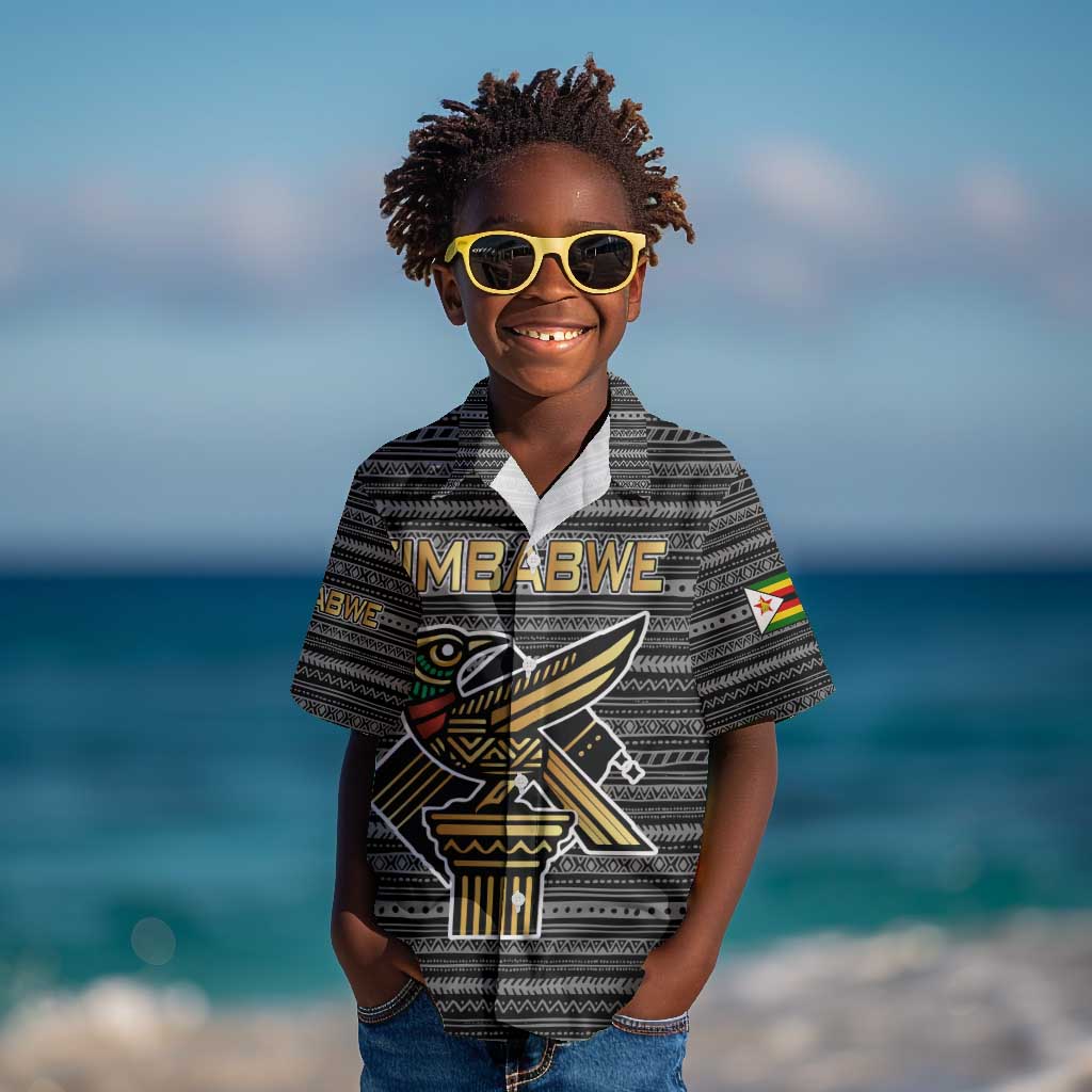 Zimbabwean Bird Statue Kid Hawaiian Shirt Tribal Pattern Flag Patch and Heritage Symbol