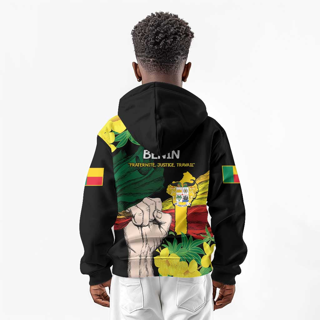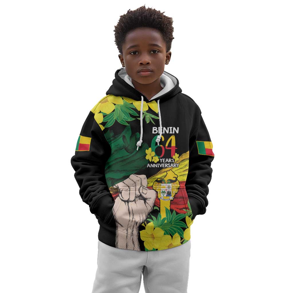 Benin National Day Kid Hoodie Happy 64th Independence Anniversary Yellow Allamanda