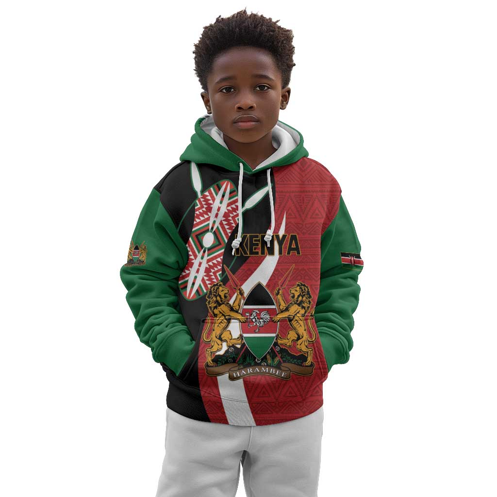 Custom Kenya Football Kid Hoodie Maasai Shield Coat Of Arms Style